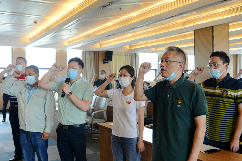 在鮮艷的黨旗下,黨委委員傅有國帶領(lǐng)新黨員進(jìn)行了入黨宣誓。會(huì)議同時(shí)對2019-2020年度,在創(chuàng)先爭優(yōu)活動(dòng)和精神文明創(chuàng)建活動(dòng)中涌現(xiàn)出的錢慕磊、施益波、王國興、陳偉新、肖忠明、徐琦,共6名同志分別授予 “優(yōu)秀黨員”榮譽(yù)稱號并給予表彰獎(jiǎng)勵(lì)。新黨員代表殷麗燕,優(yōu)秀黨員代表錢慕磊和陳偉新同志分別做了發(fā)言。